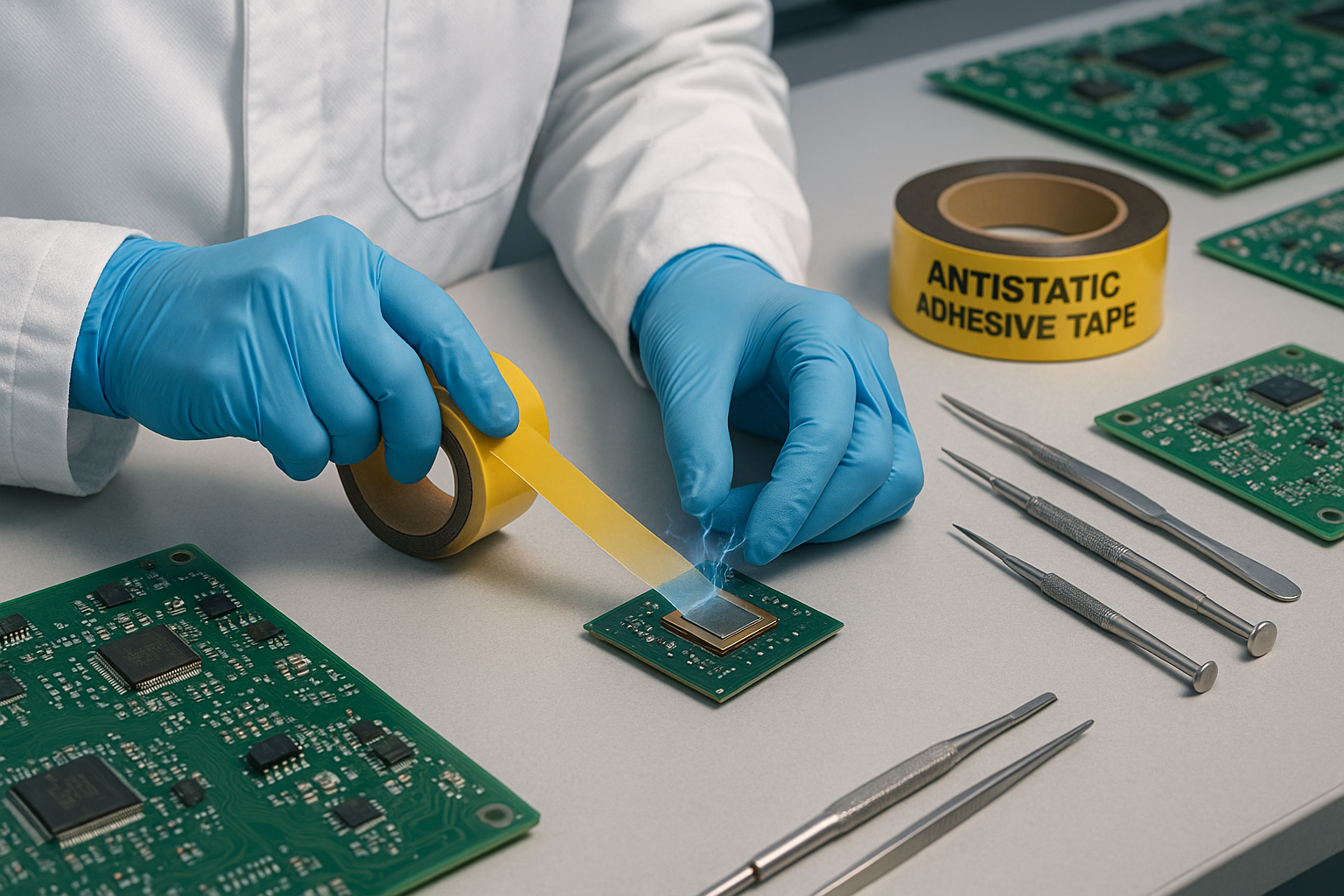 Los vehículos modernos incluyen muchos sensores sensibles y ECU cuya fabricación y prueba requieren control ESD. Las cintas utilizadas en mazos de cables, fijación temporal durante la manipulación de PCB o en el ensamblaje de módulos de sensores se benefician de propiedades antiestáticas para reducir las fallas de campo latentes causadas por la tensión estática durante la producción y las pruebas.